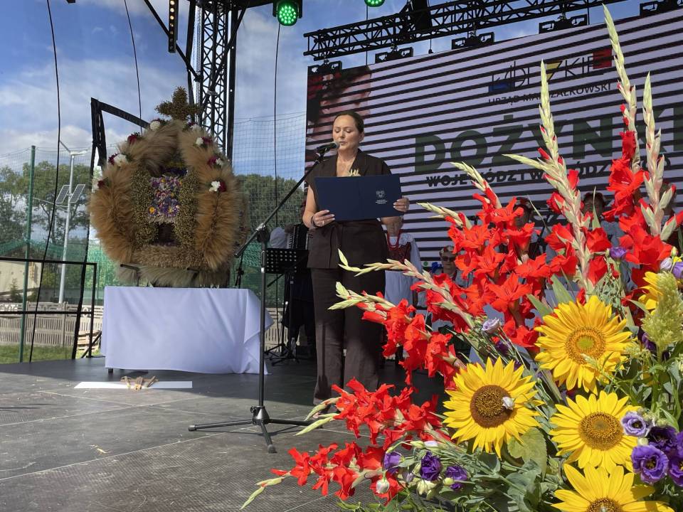 Zapewniła również o wsparciu dla obszarów wiejskich – w tym roku sołectwa z woj. łódzkiego otrzymały rekordowe 40 mln zł m.in. na świetlice i miejsca integracji. Część obrzędową rozpoczął Zespół Śpiewaczy „Sędziejowianki", a następnie starostowie dożynek – Agnieszka Węglewska i Paweł Michalak – przekazali na ręce marszałek bochen chleba upieczony z tegorocznych zbóż.