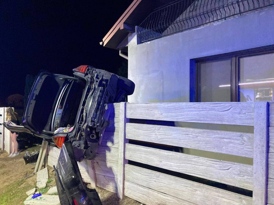 Samochód zniszczył ogrodzenie i przebił ścianę budynku!