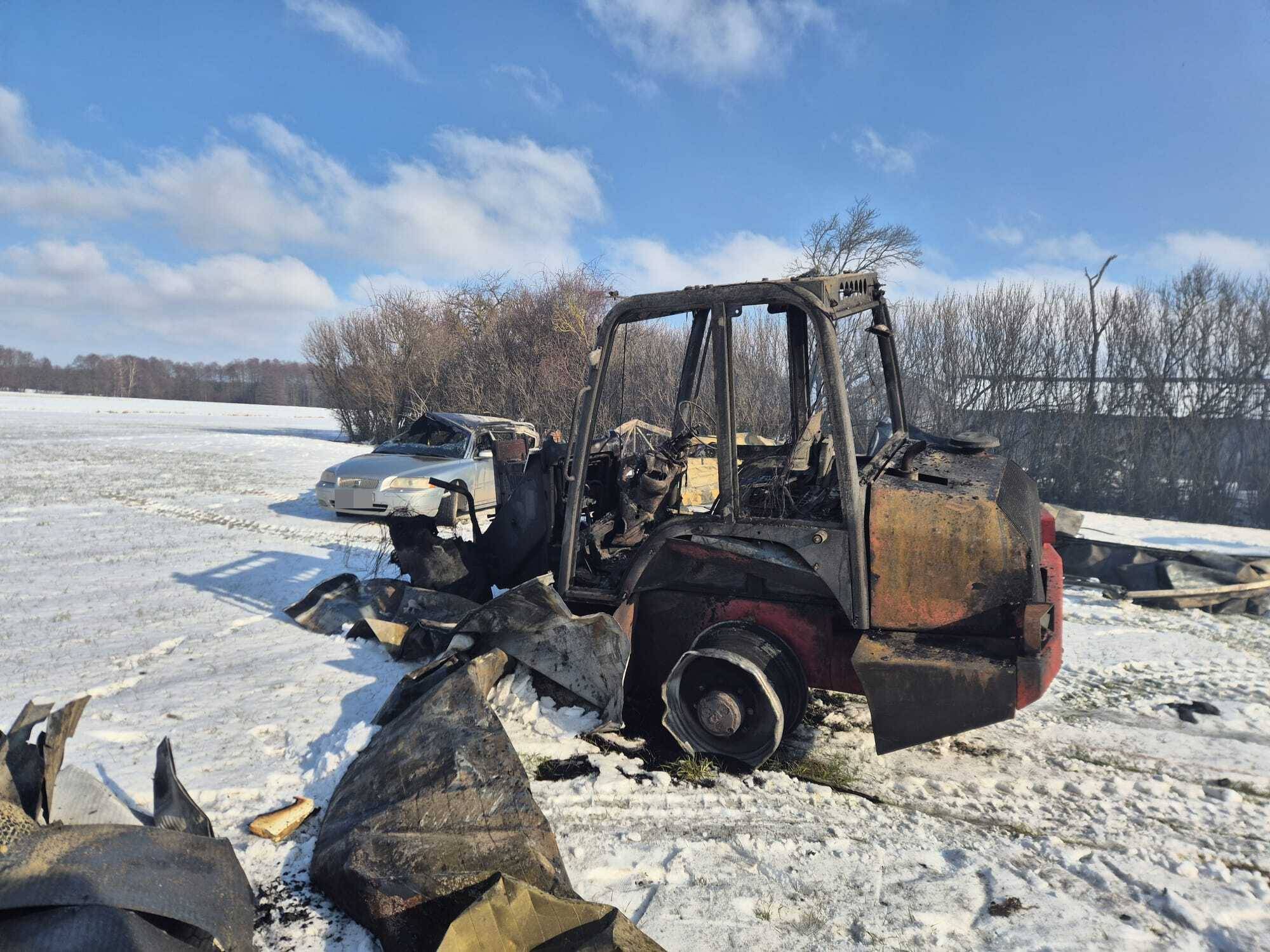 Niestety, straty materialne są ogromne. Spaleniu uległy maszyny rolnicze, w tym min.: kombajny do kukurydzy, ciągniki, opryskiwacz, a także dwa samochody - osobowy i dostawczy. Zniszczeniu uległ również inny sprzęt rolniczy i gospodarczy.
