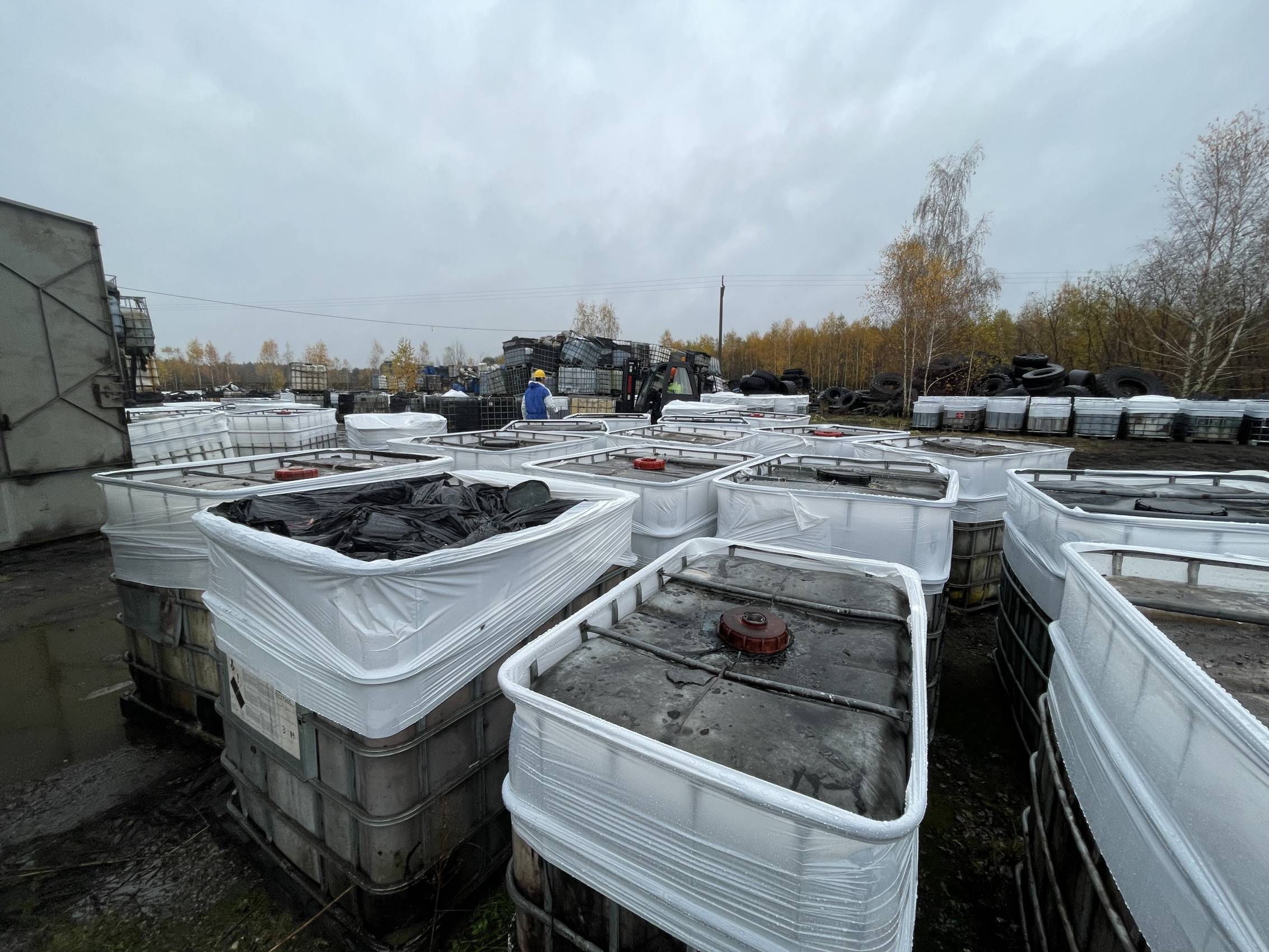 W Chabielicach rozpoczął się kolejny, kluczowy etap prac związanych z usuwaniem niebezpiecznych odpadów. W poniedziałek, 3 listopada, ze składowiska odjechało już kilka transportów z mauzerami zawierającymi substancje niebezpieczne – w momencie naszej obecności był to trzeci konwój. To początek intensywnej akcji, która ma doprowadzić do całkowitego oczyszczenia terenu.