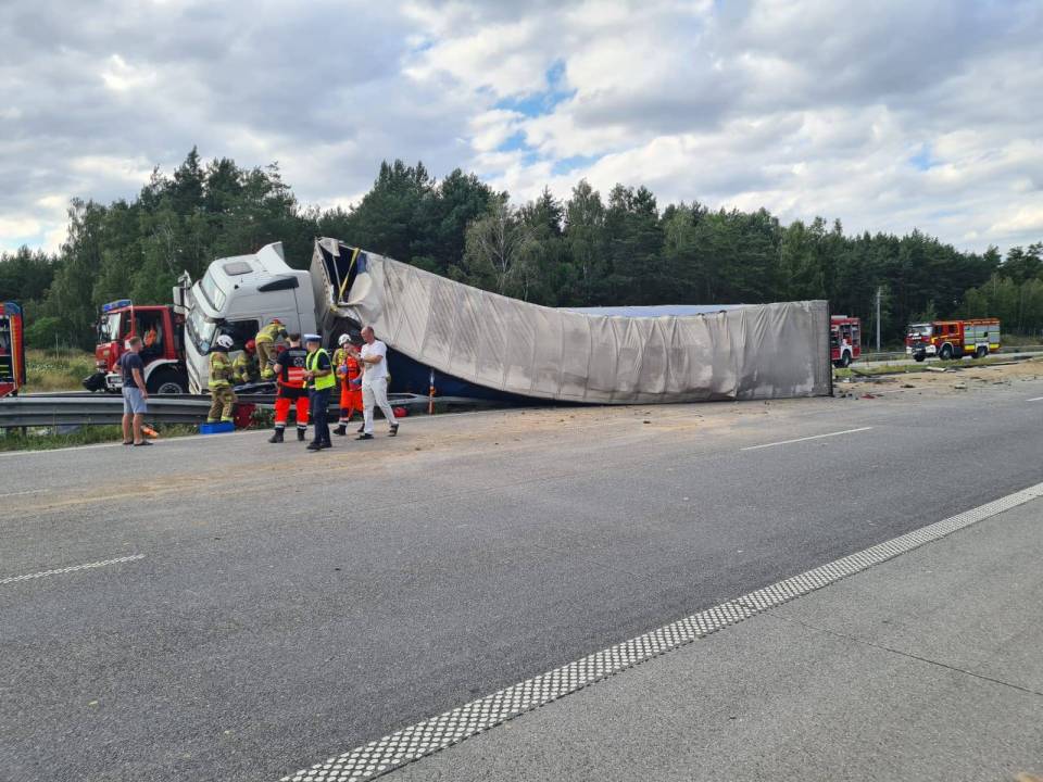 Wypadek na A1 w Łódzkiem: Ciężarówka przygniotła osobówkę. W bmw zakleszczone dziecko. Autostrada zablokowana w obu kierunkach [Foto]