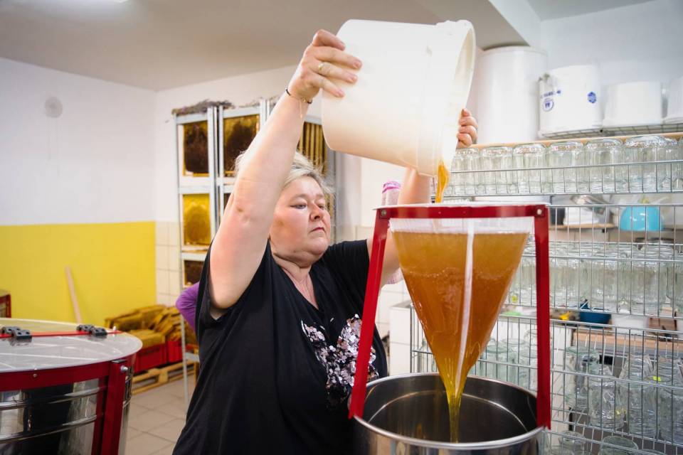 - Zimą jest czyszczenie ramek, ich drutowanie, odkażanie wszystkiego, to jest ciężka praca – mówi pan Piotr, który wszystko robi własnoręcznie – skrobie każdą ramkę, usuwa z nich druty, dezynfekuje. Zimowe prace porządkowe to zabezpieczenia pszczelich rodzin przed chorobami, ale i przygotowanie pasieki do pracy już od wczesnej wiosny. Tegoroczna, ze względu na pogodę, głównie w maju, była trudna. – Akacja w tym roku kwitła pięknie, ale nie powiedziałabym, że ładnie nektarowała, więc tego miodu będzie bardzo mało – mówi pani Renata.